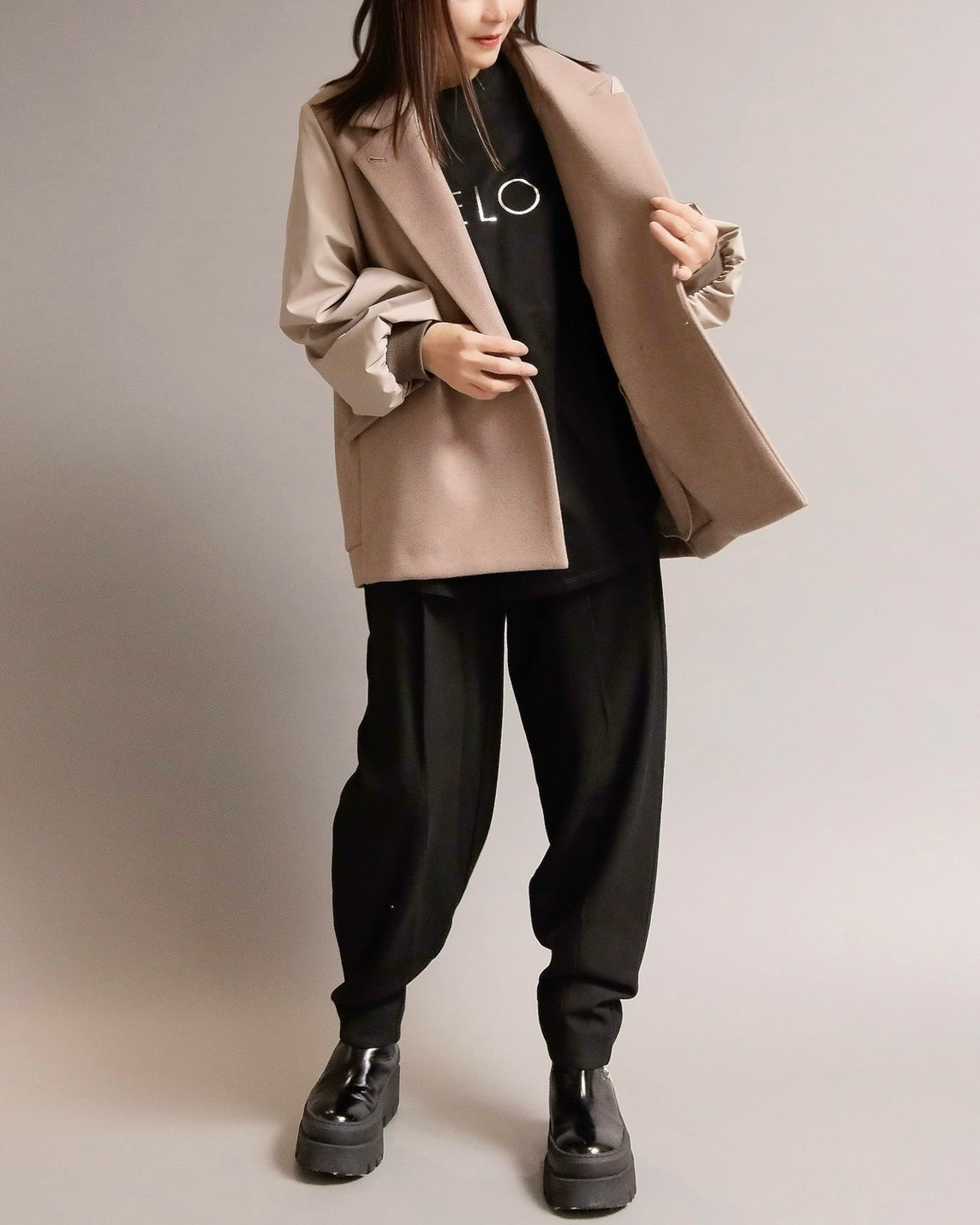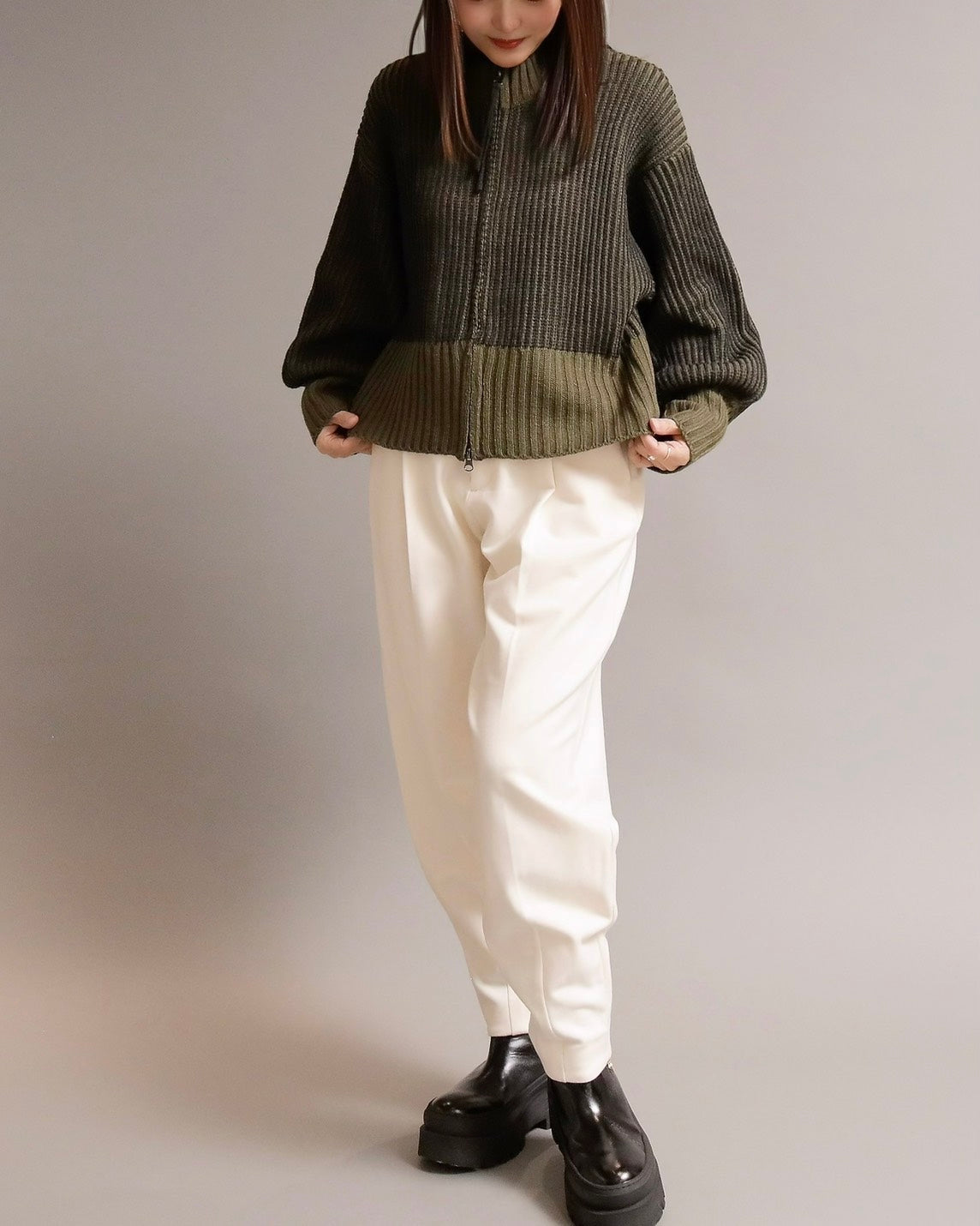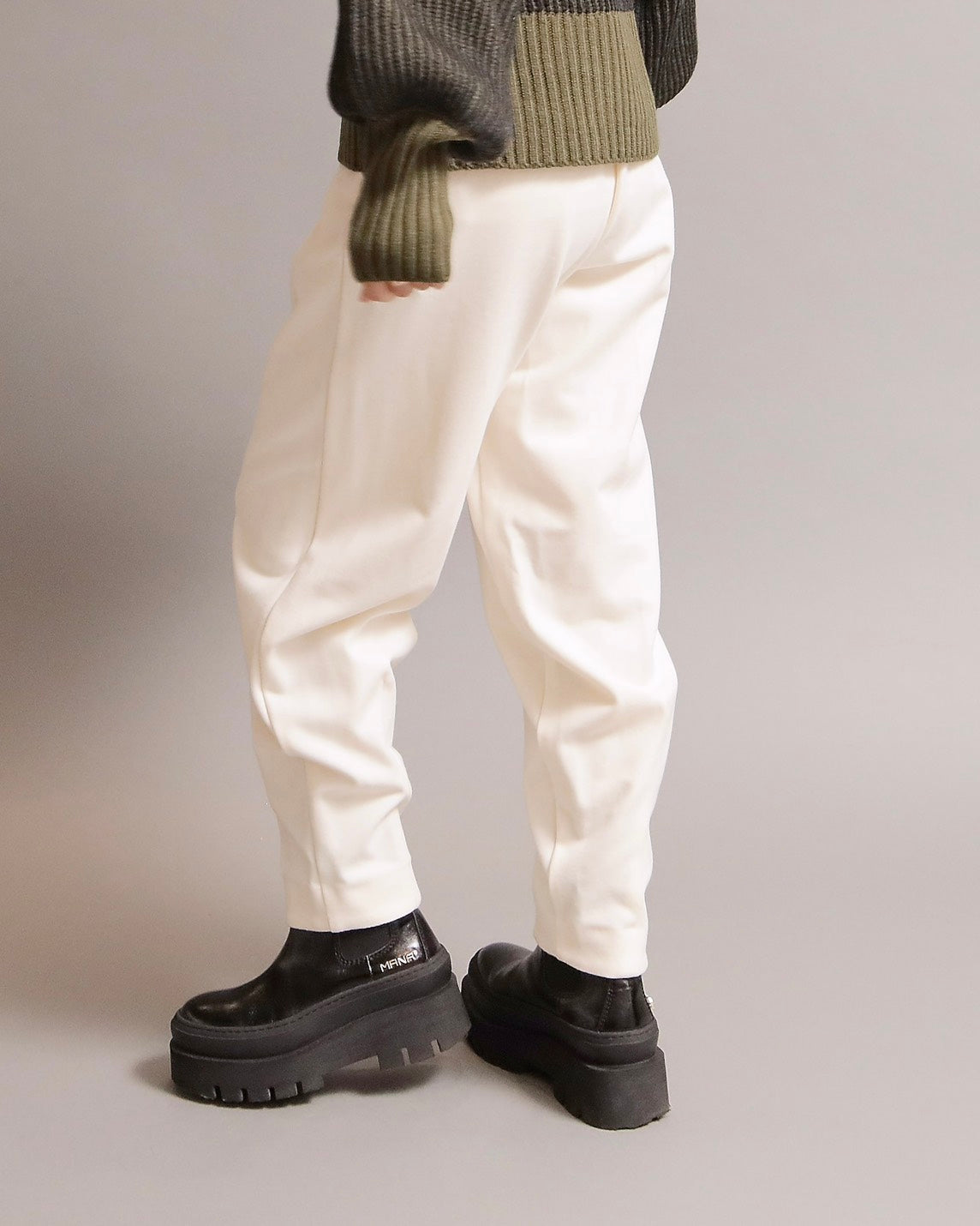 ほどよい落ち感と柔らかな風合いの生地を使用し、カジュアルからきれいめまで幅広く対応。ショート丈トップスやオーバーサイズニット、ジャケットとも相性良く、シーズンレスで活躍します。