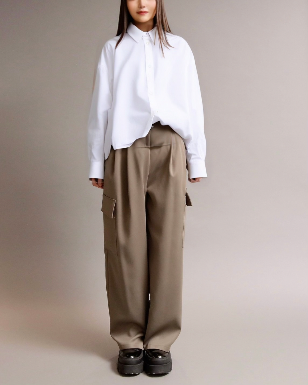 シャツやニットと合わせればモードに、Tシャツでラフにまとめてもこなれた雰囲気に。オン・オフ問わず使える、“大人のためのカーゴパンツ”です。