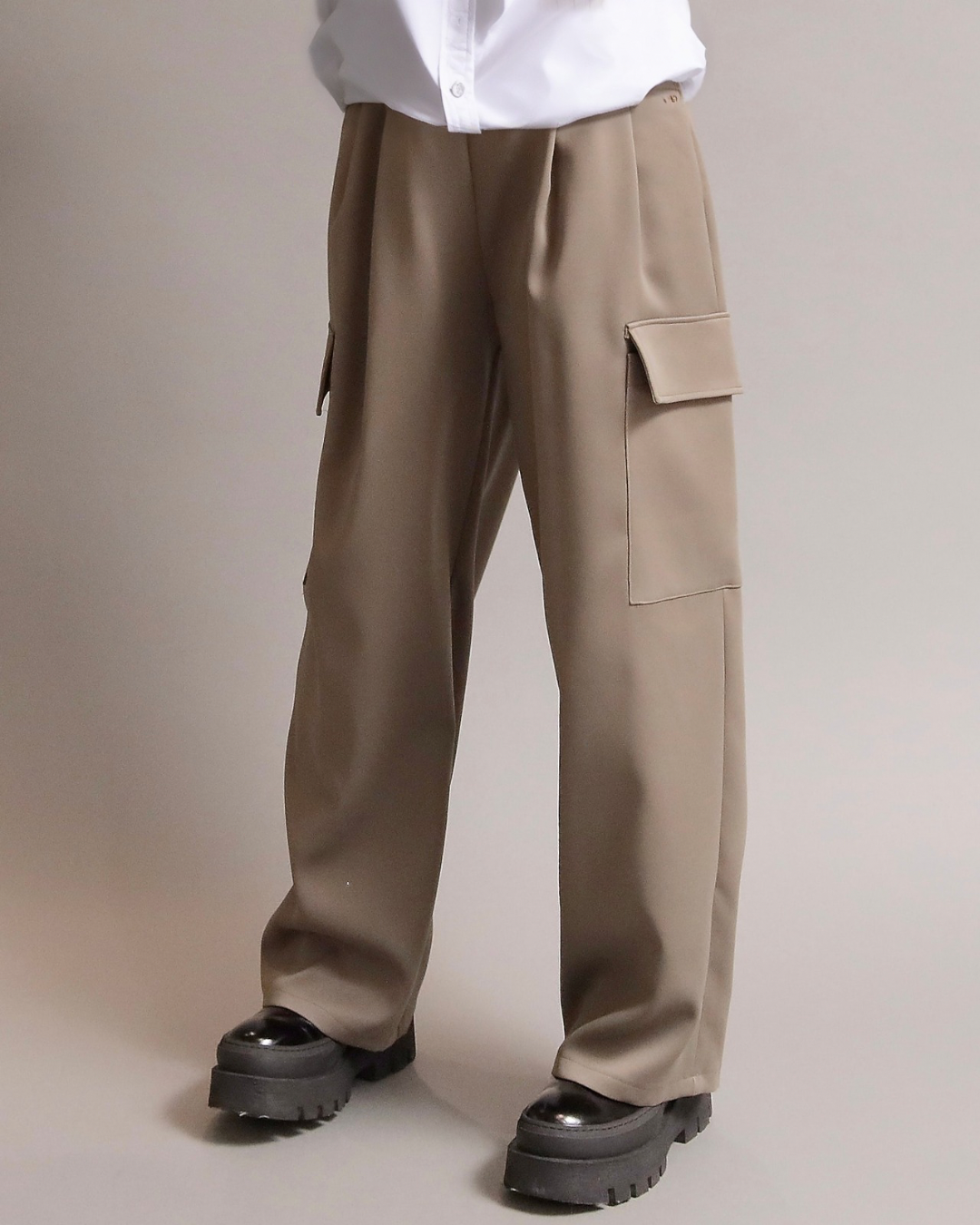 ミニマルなルックスの中に、さり気ない機能性を忍ばせたワイドカーゴパンツ。