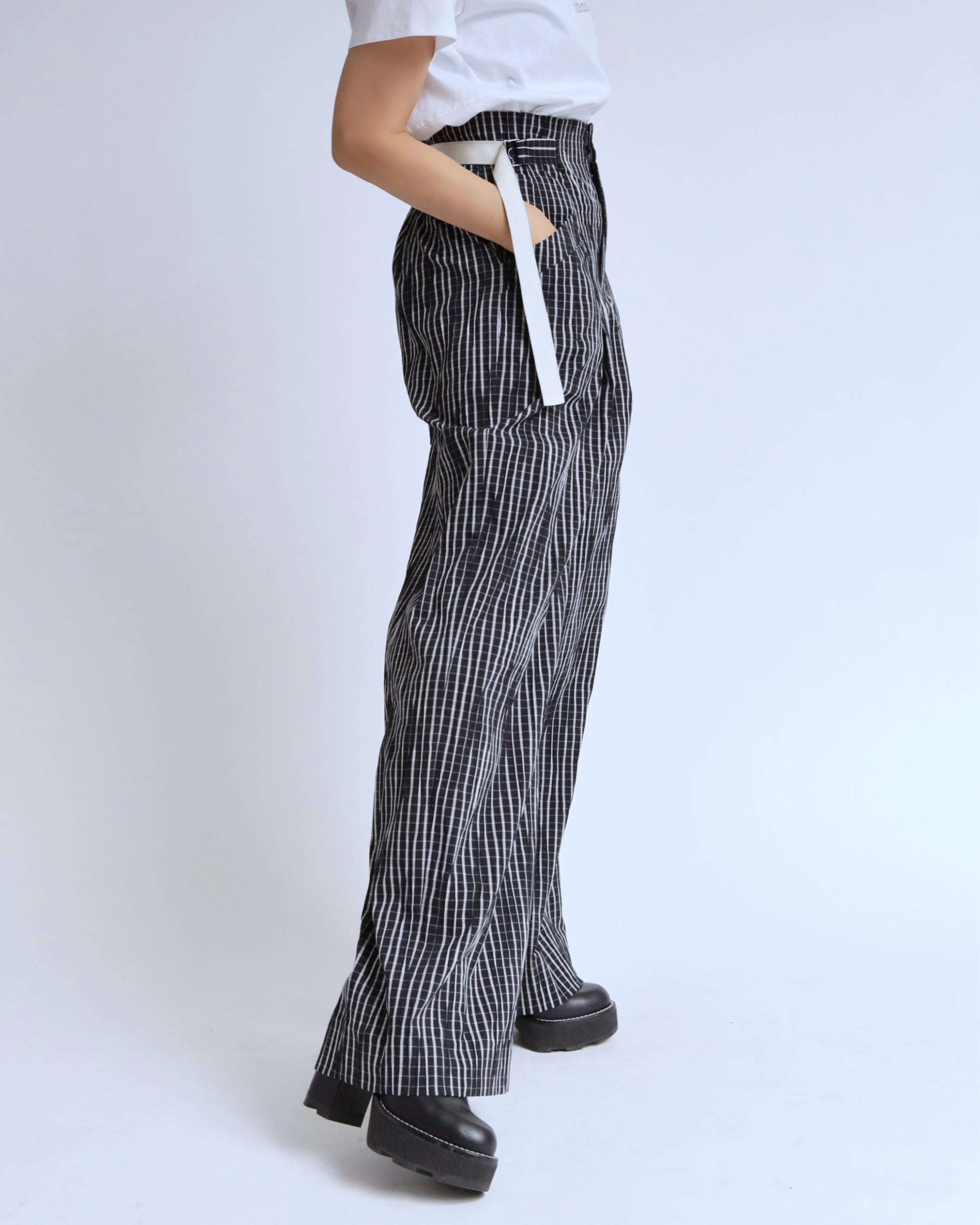 チェック ベルテッド ワイドパンツ