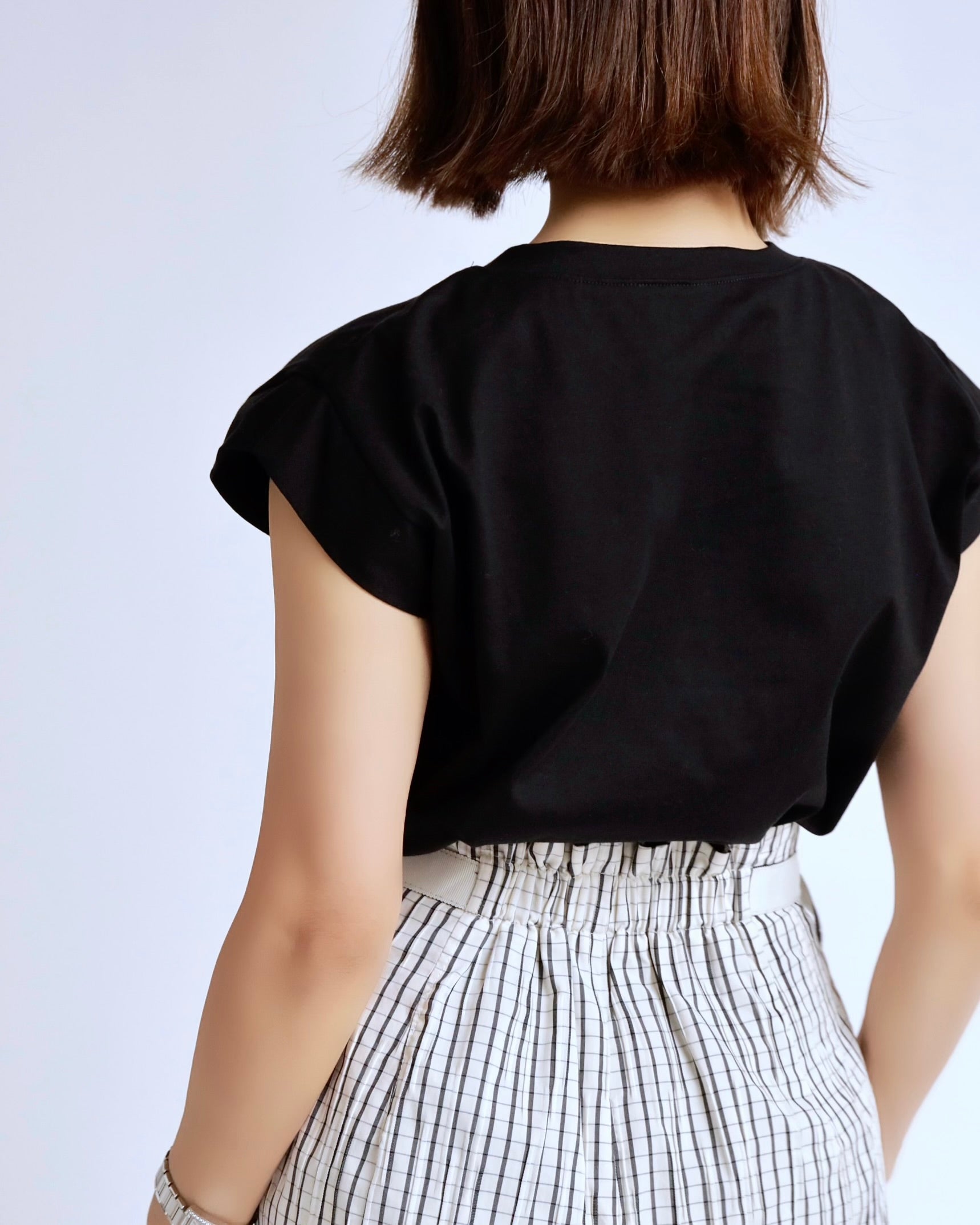 肩先をさりげなく覆うシルエットで、腕まわりはすっきり、全体は程よくルーズ。大人の女性が自然体で着られるバランスに仕上げました。