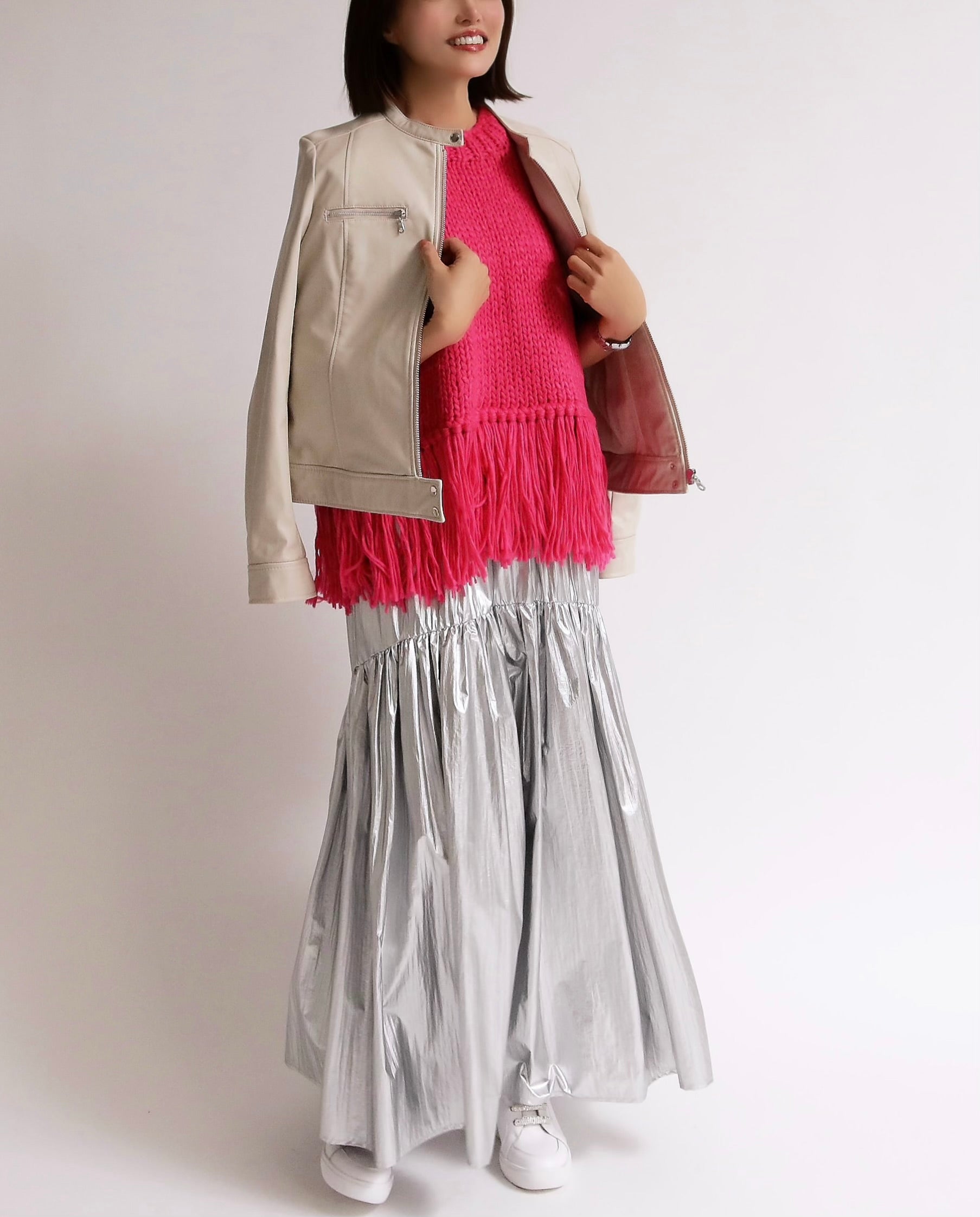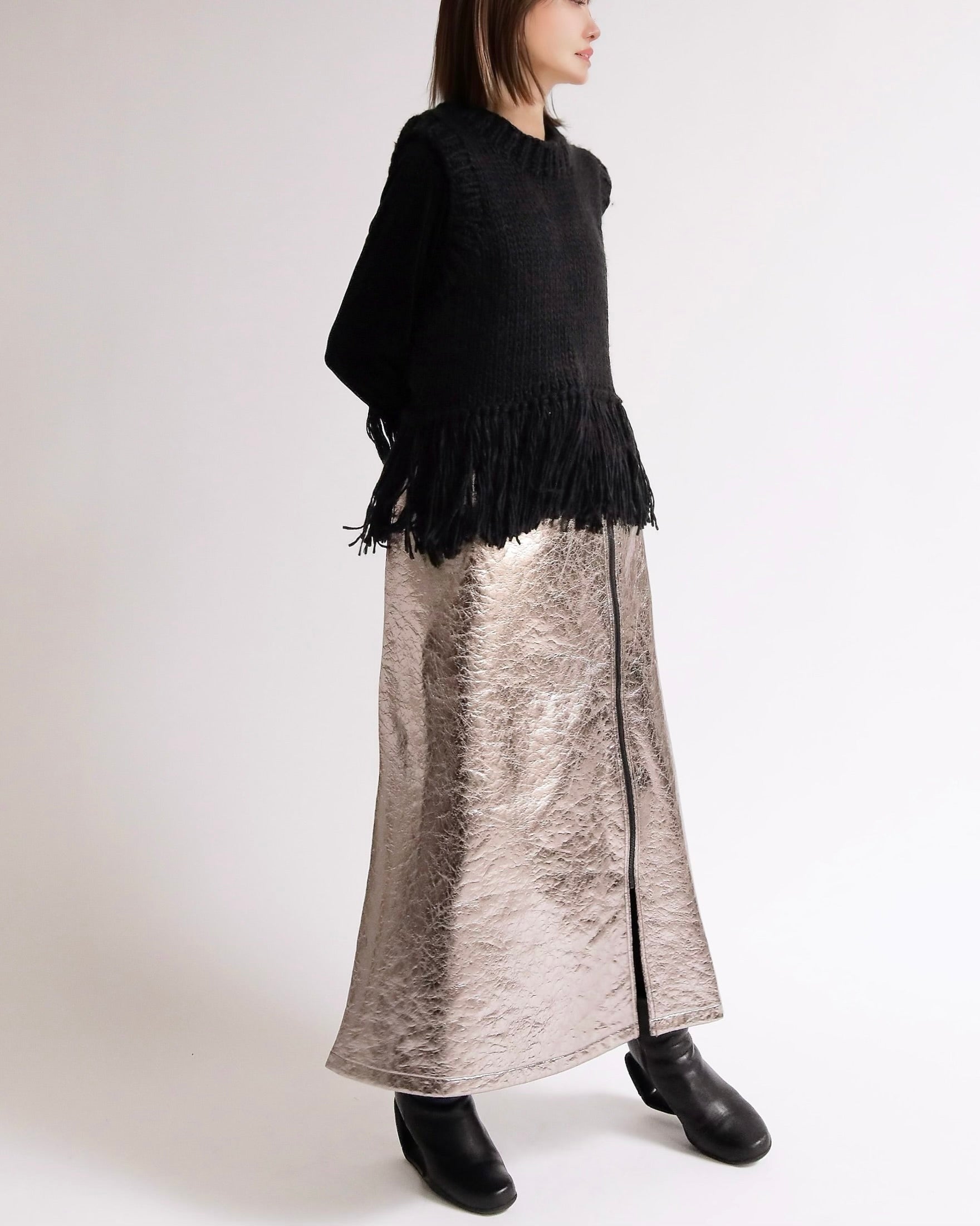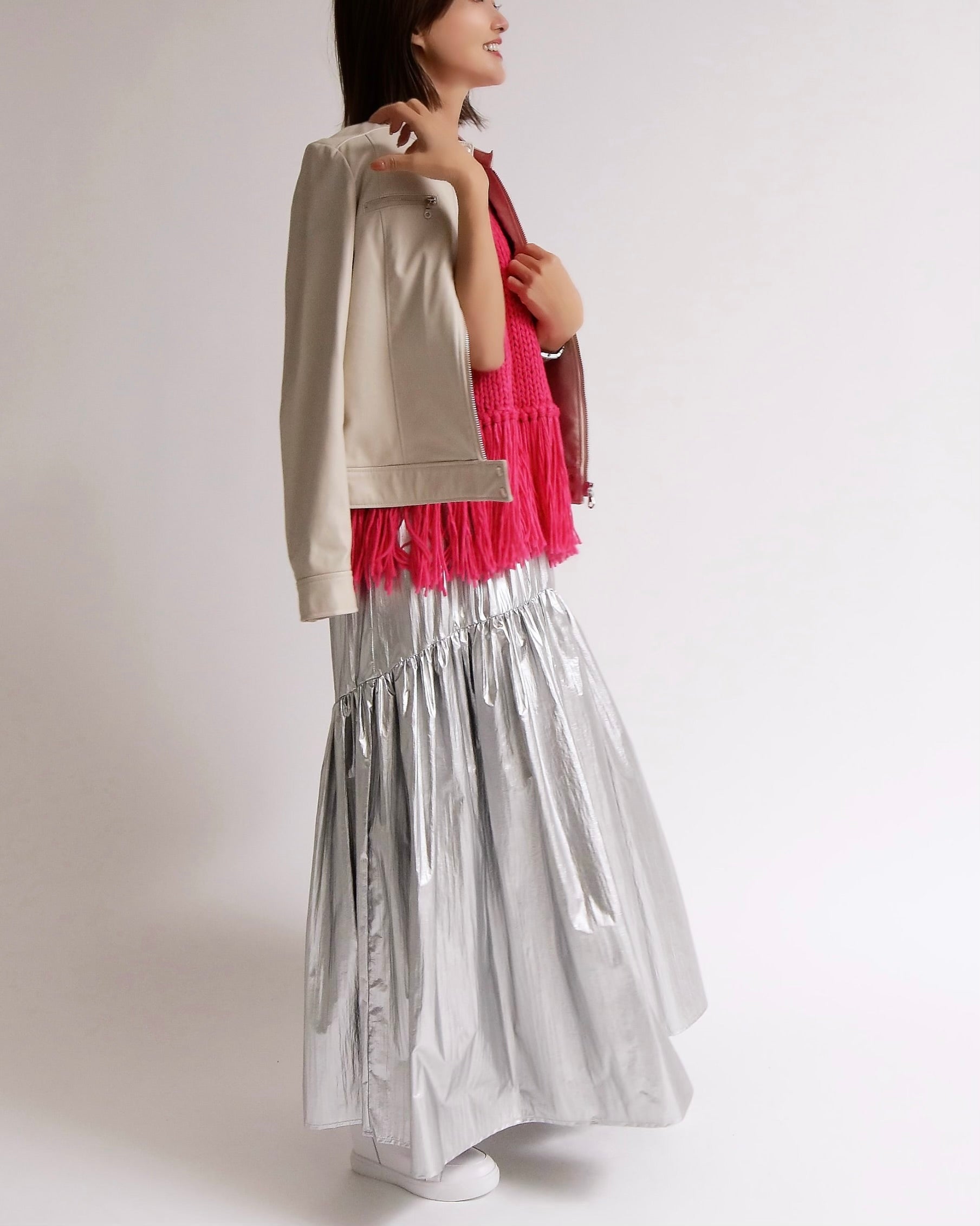 シンプルなシルエットながら、裾のフリンジが揺れるたびにスタイリングにリズムを与え、いつものコーディネートを一気にアップデートしてくれます。