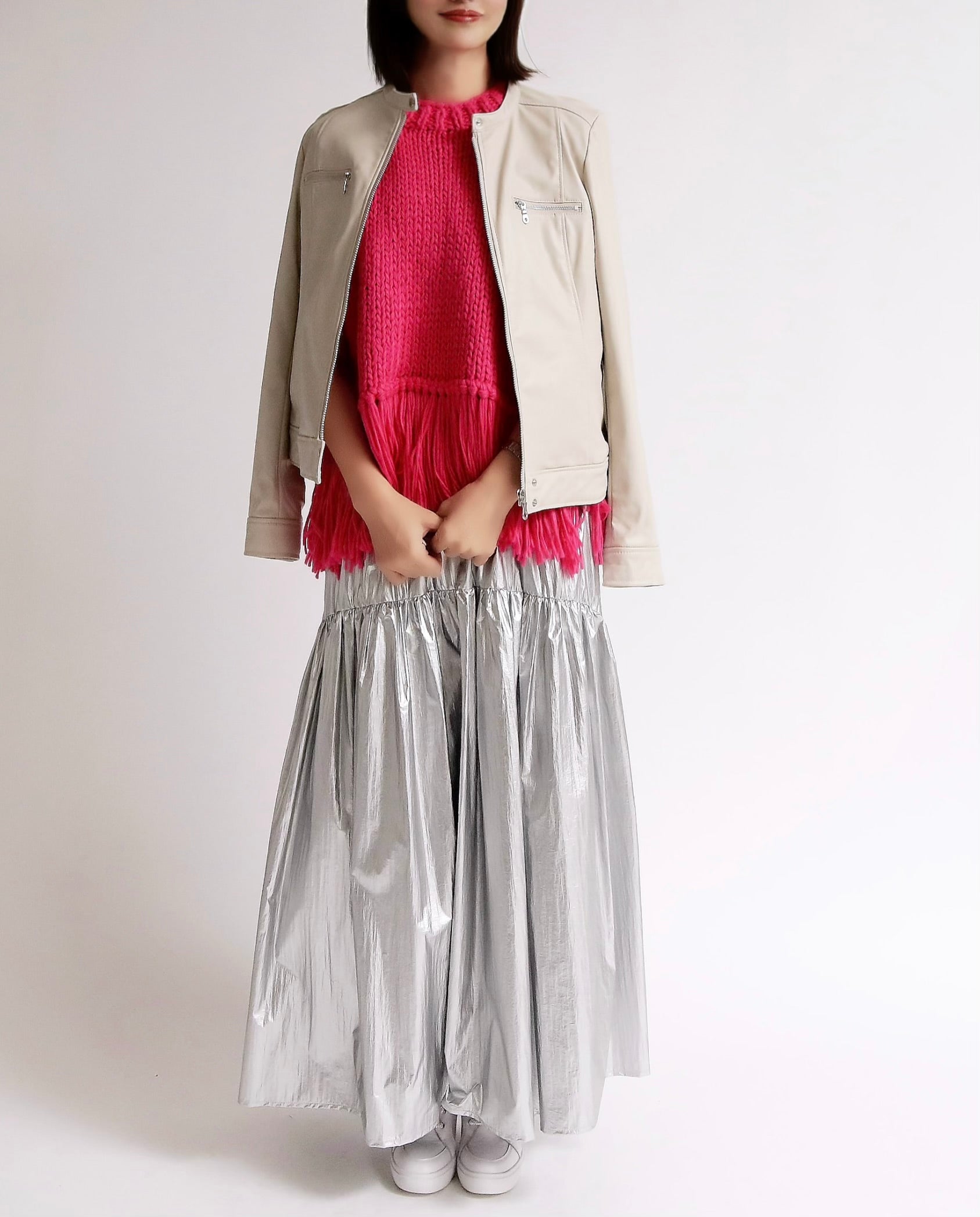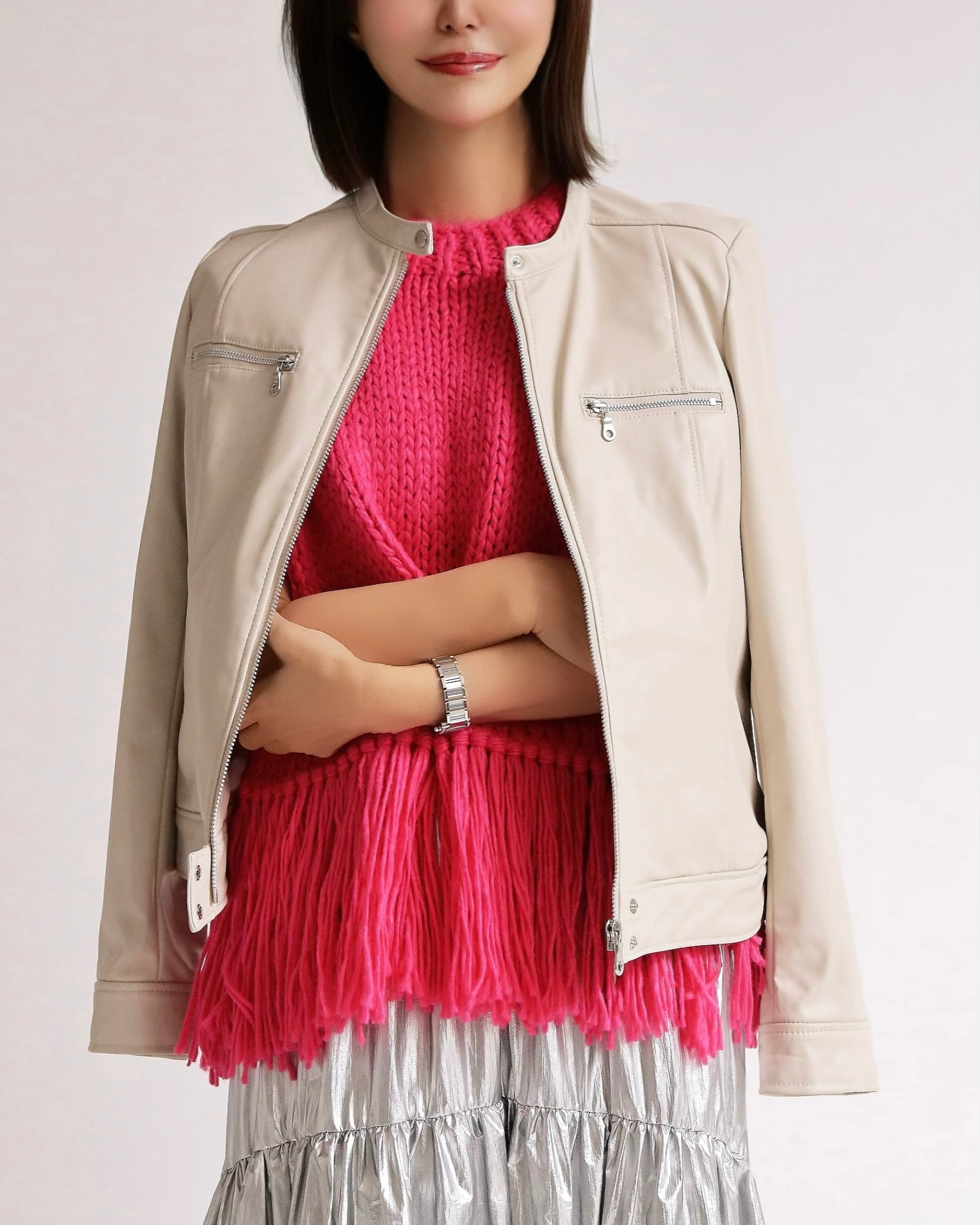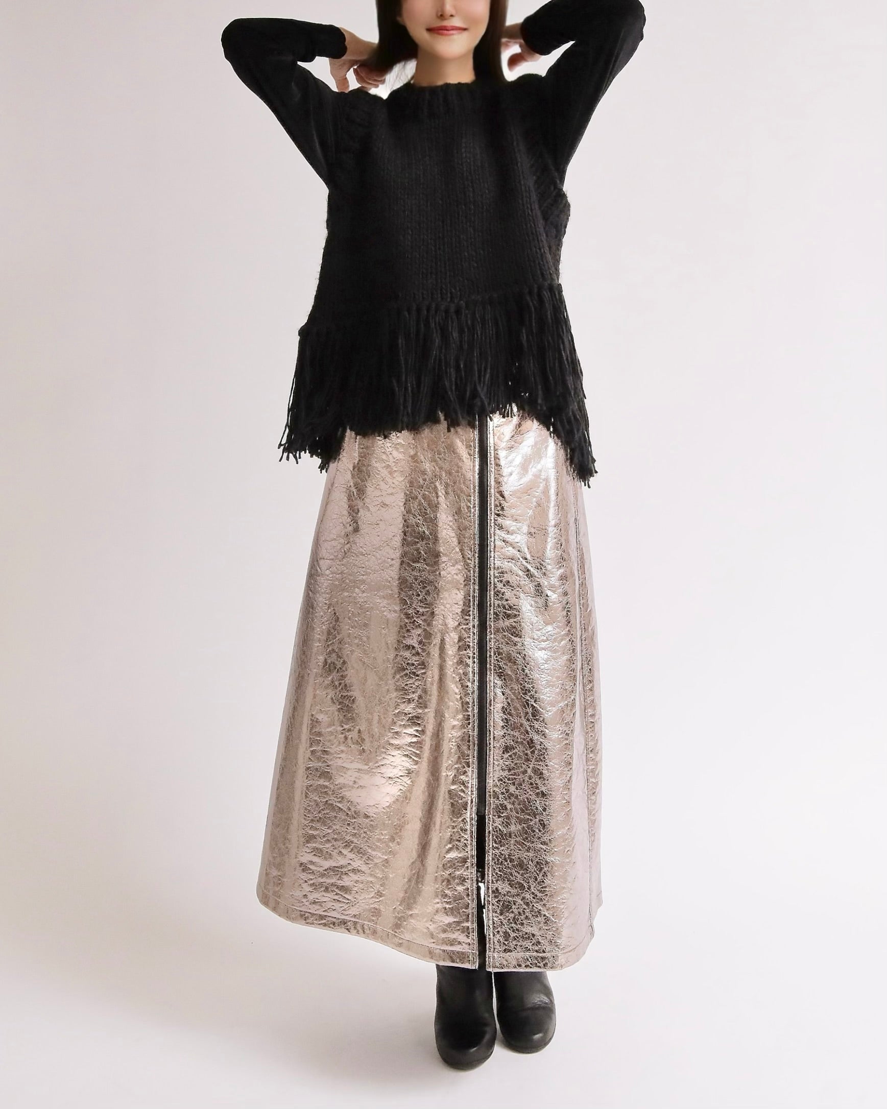 シンプルなシルエットながら、裾のフリンジが揺れるたびにスタイリングにリズムを与え、いつものコーディネートを一気にアップデートしてくれます。