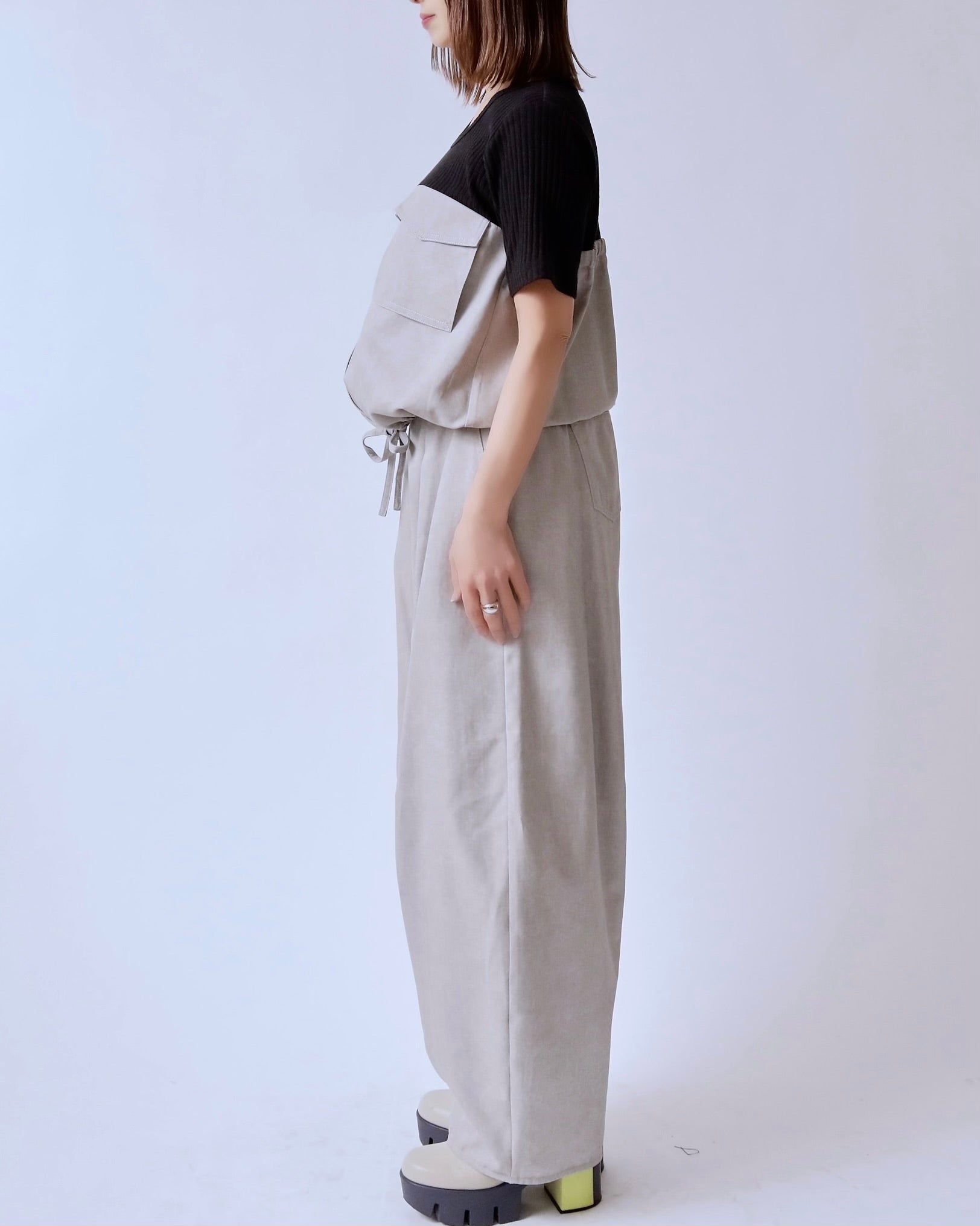 身頃部分はバルーン気味の立体シルエットで、ウエストのドローストリングを絞ることで自然なブラウジングが可能。