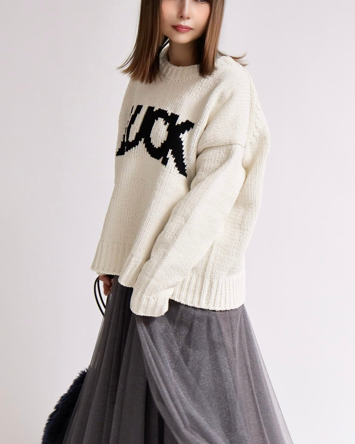 存在感のあるクルーネックニット。