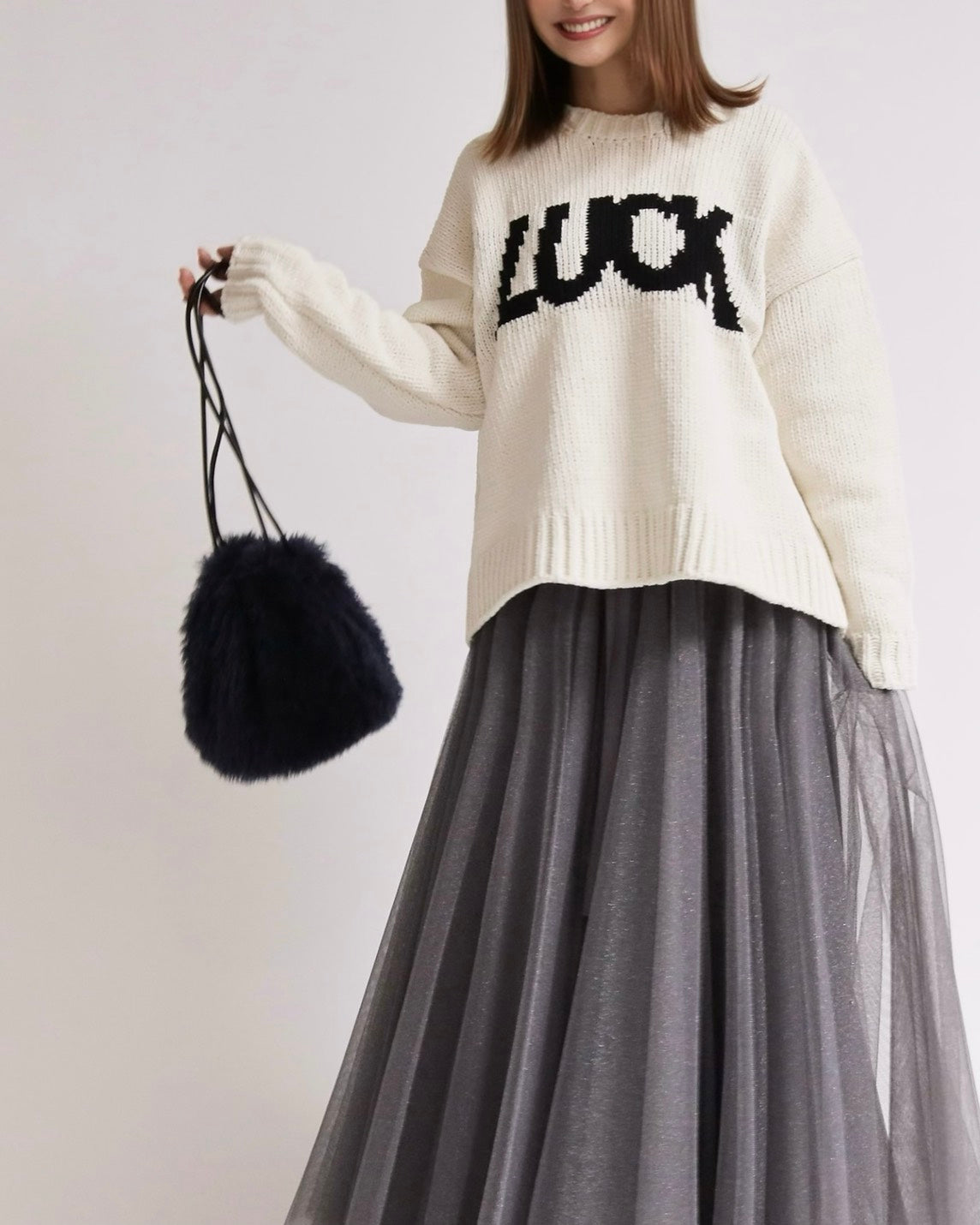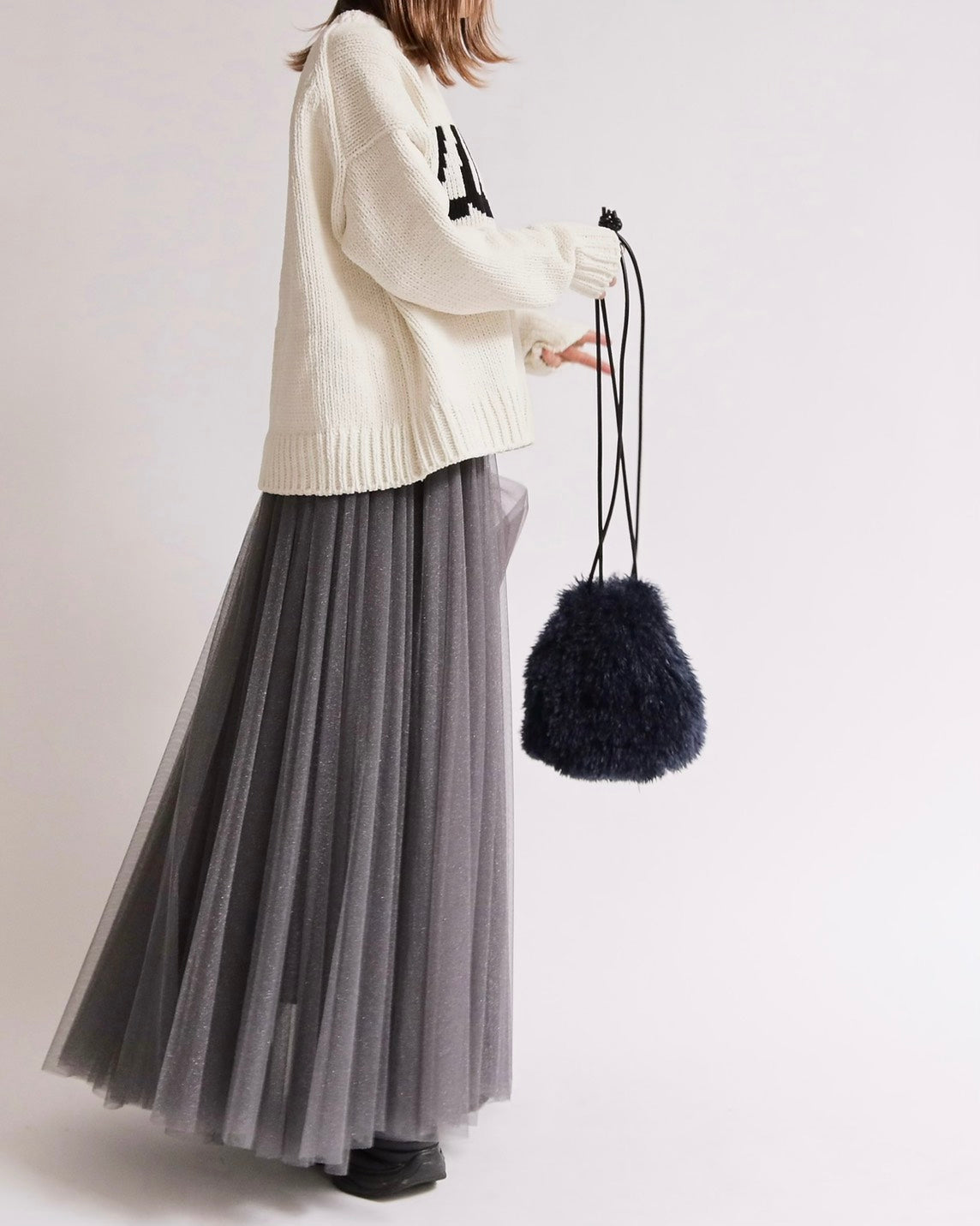 スカートやワイドボトムとも好バランスに仕上げています。