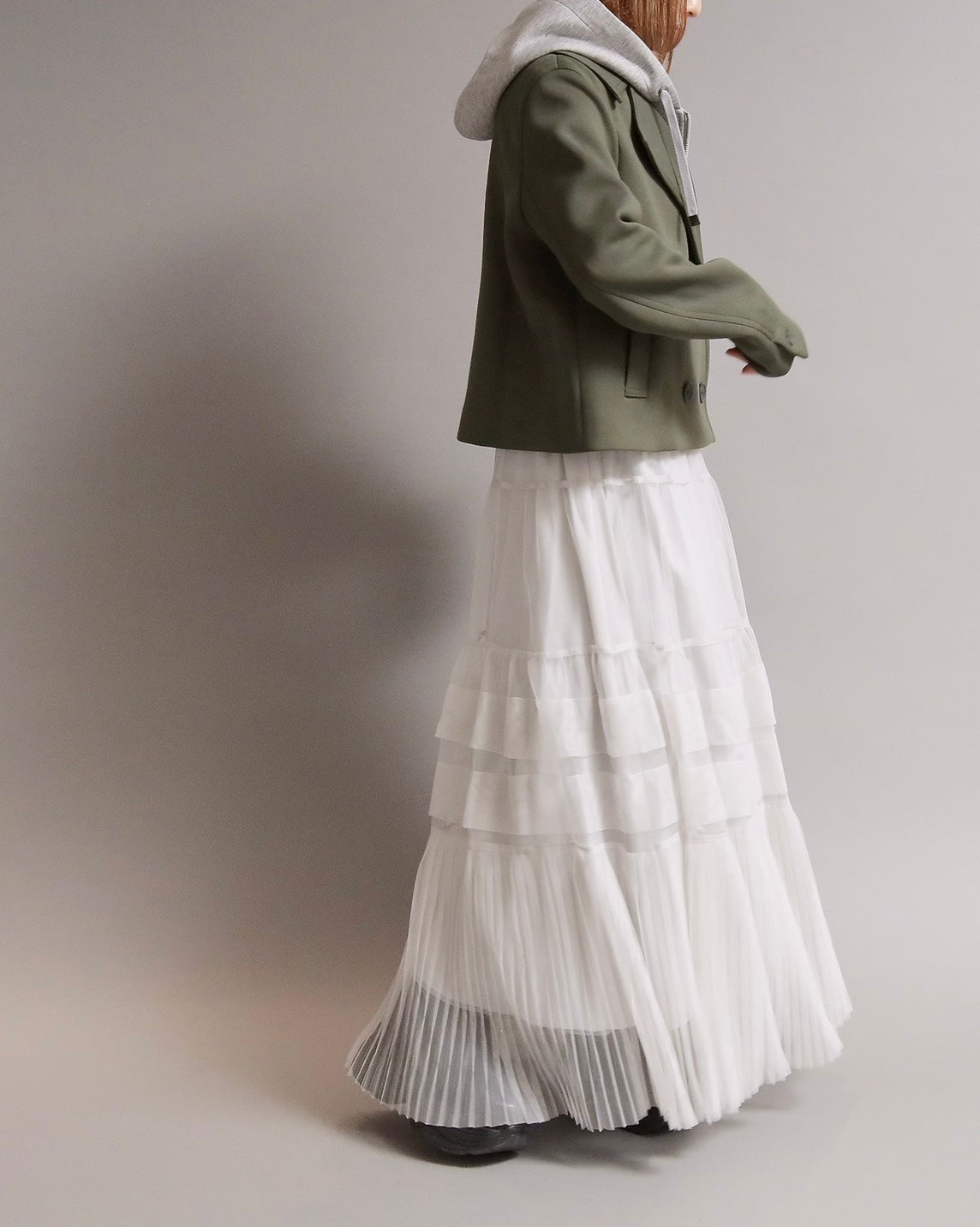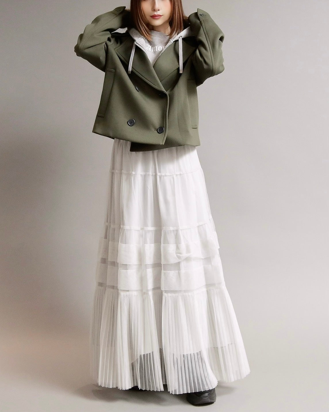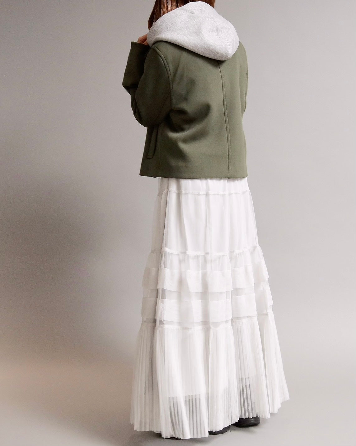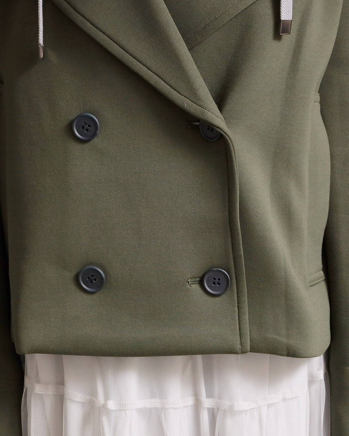 フード付きのカジュアル感と、ショートジャケットのきちんと感を一枚で楽しめる2WAYデザイン。フード部分は 取り外し可能 なので、その日の気分やコーディネートに合わせて表情を変えられます。