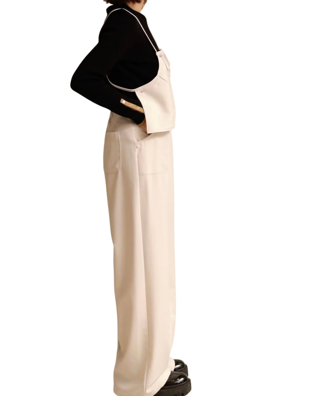 コーデの幅がぐっと広がる、2WAY仕様のユーティリティビスチェ×ワイドパンツセットアップ。ミニマルなデザインながら、スタイリング次第で印象を自在に変えられる万能アイテムです。