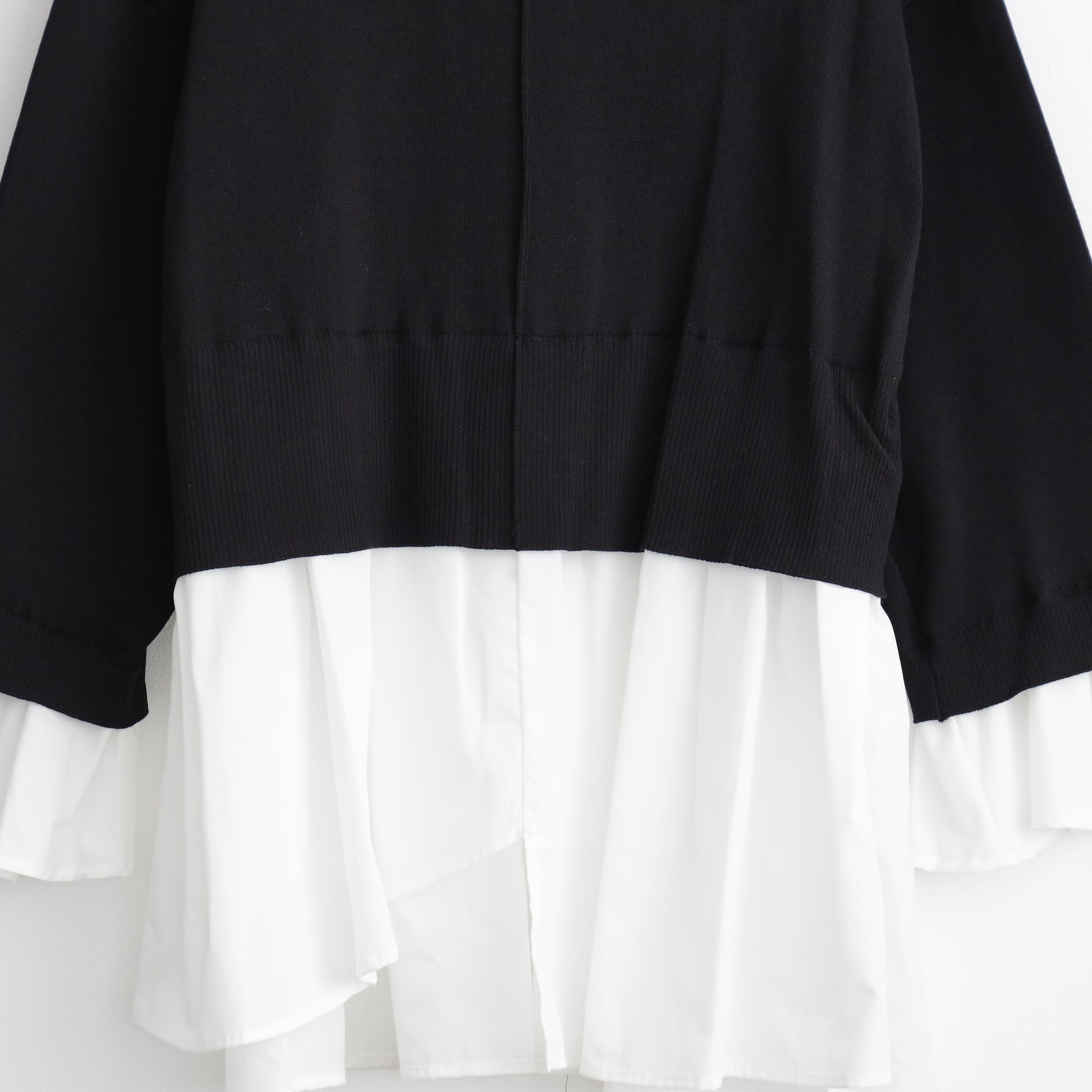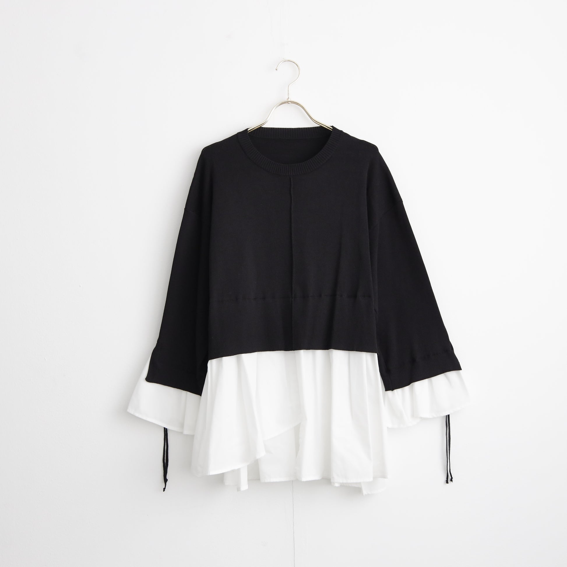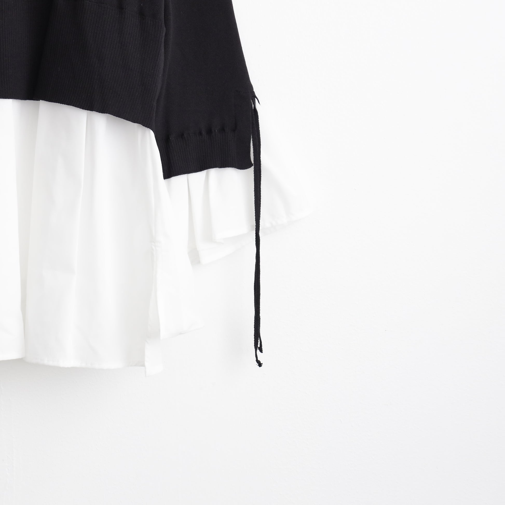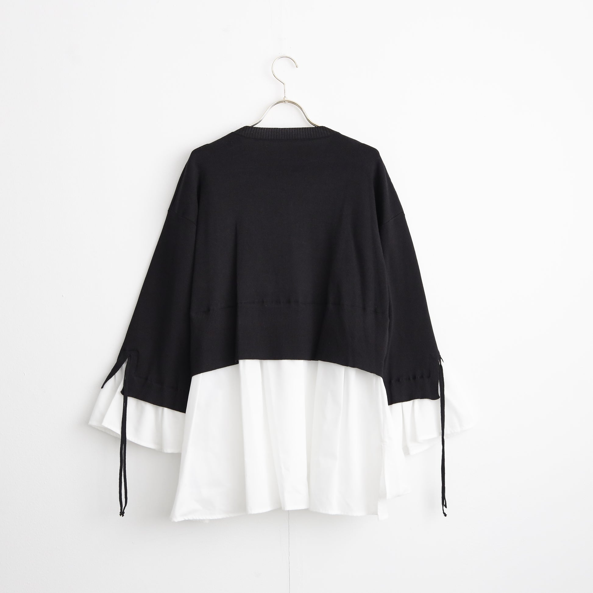 シャツとニットのレイヤード風デザインのプルオーバー。