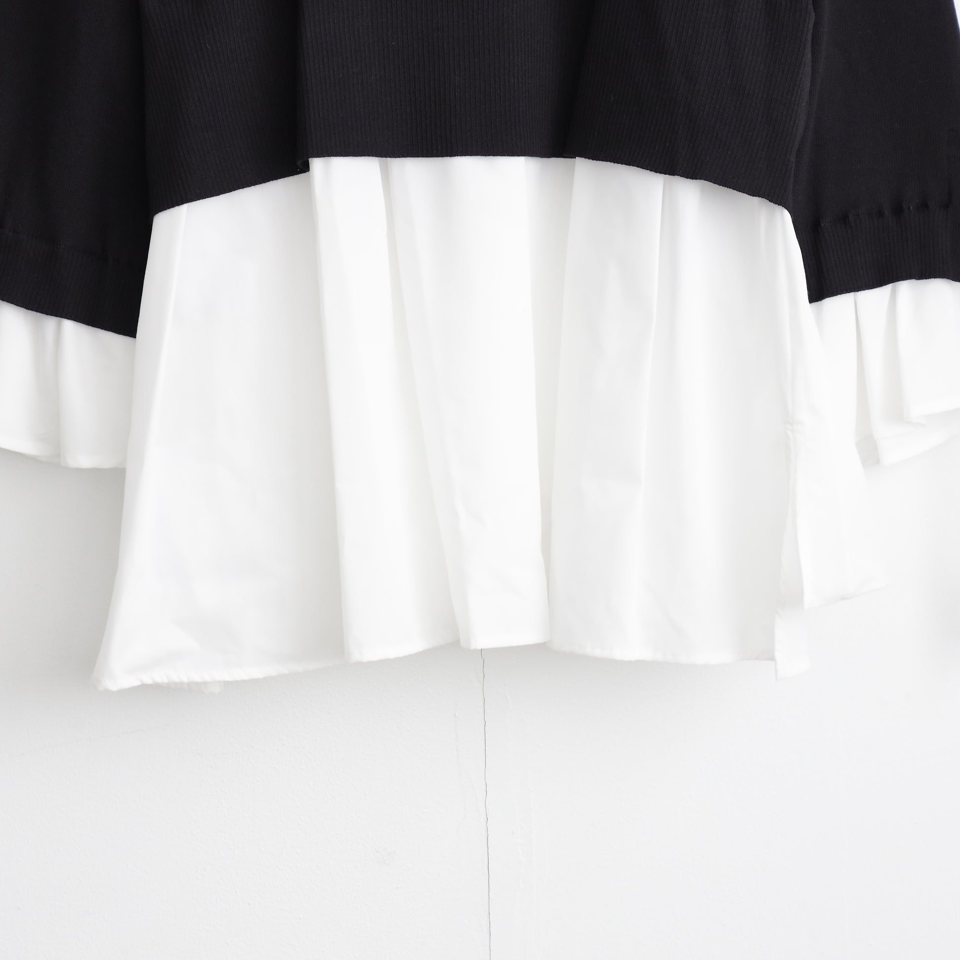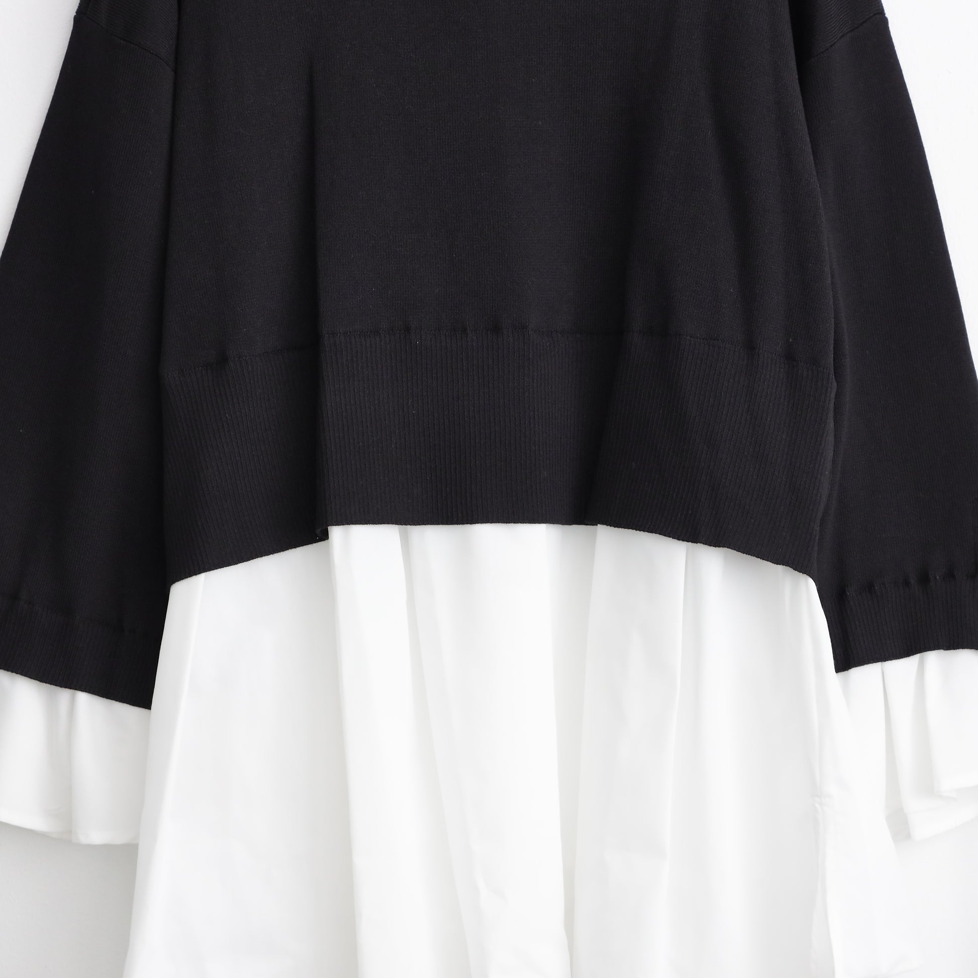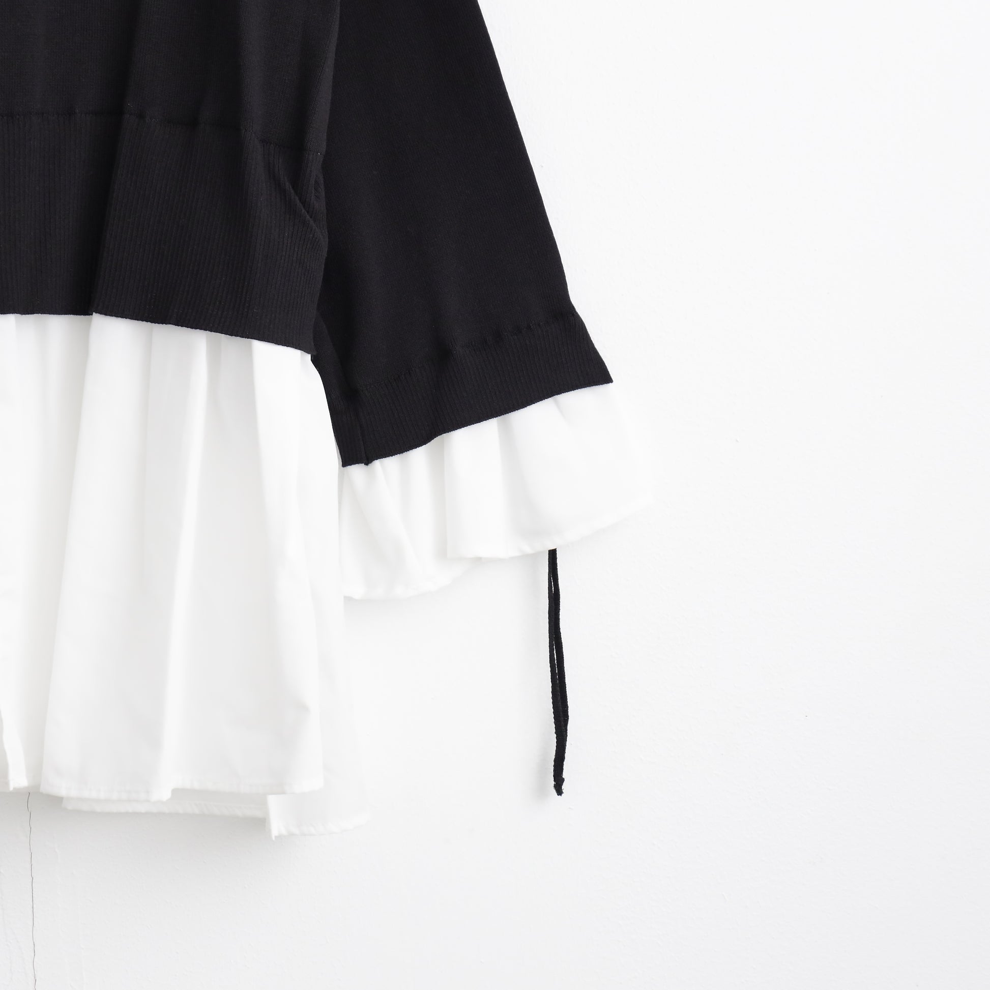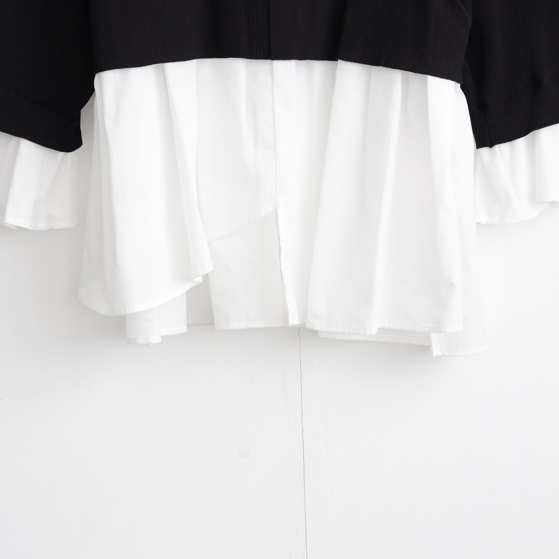 シャツとニットのレイヤード風デザインのプルオーバー。