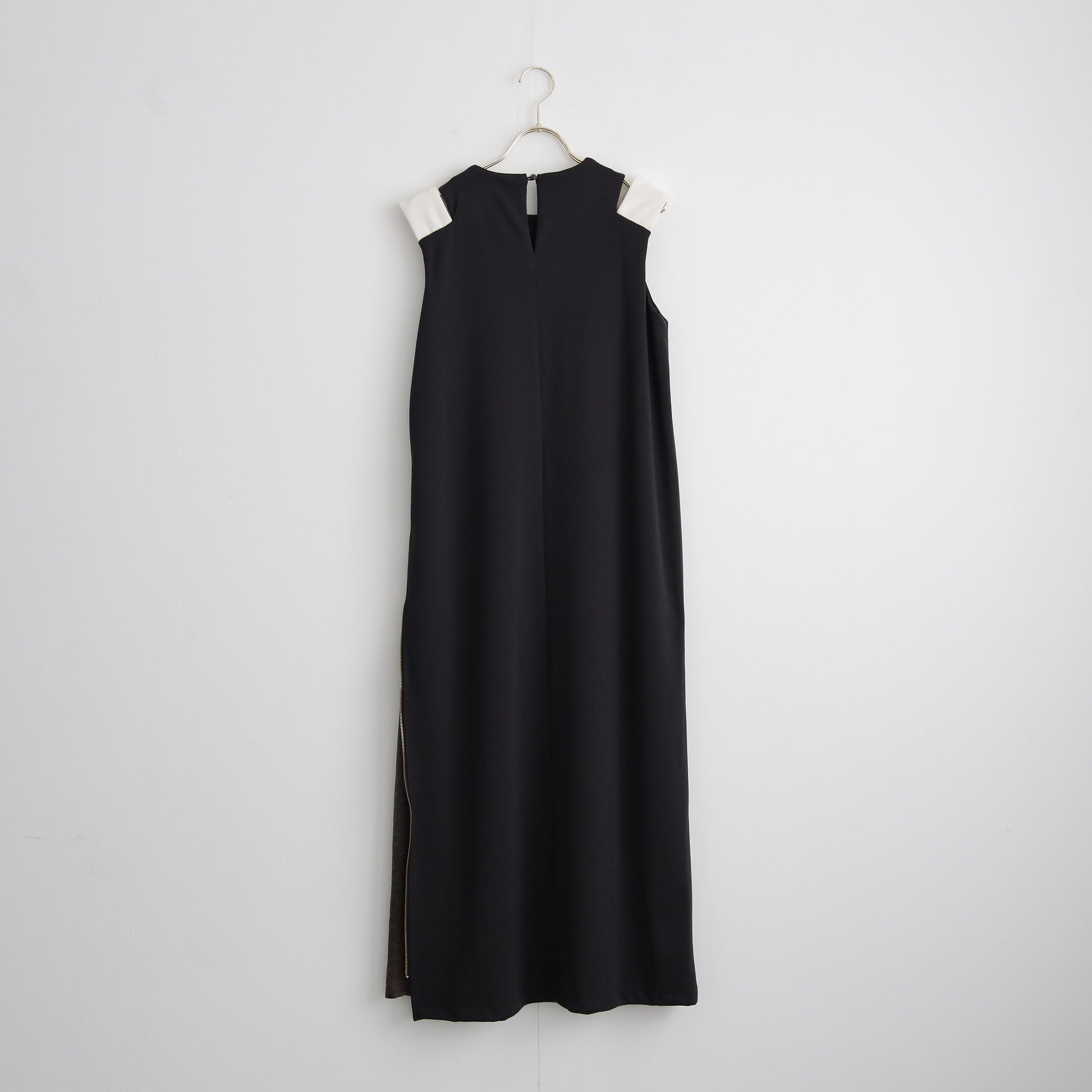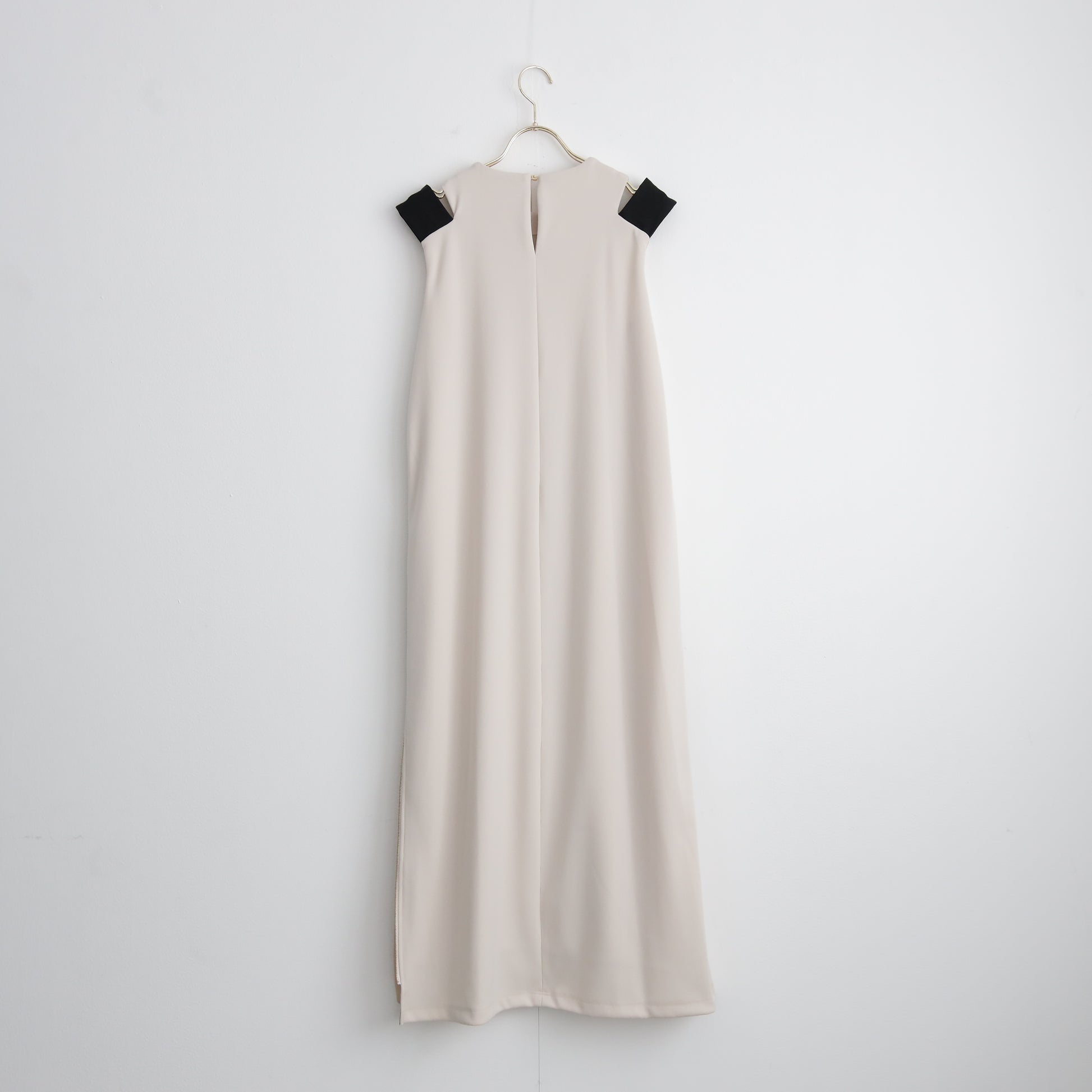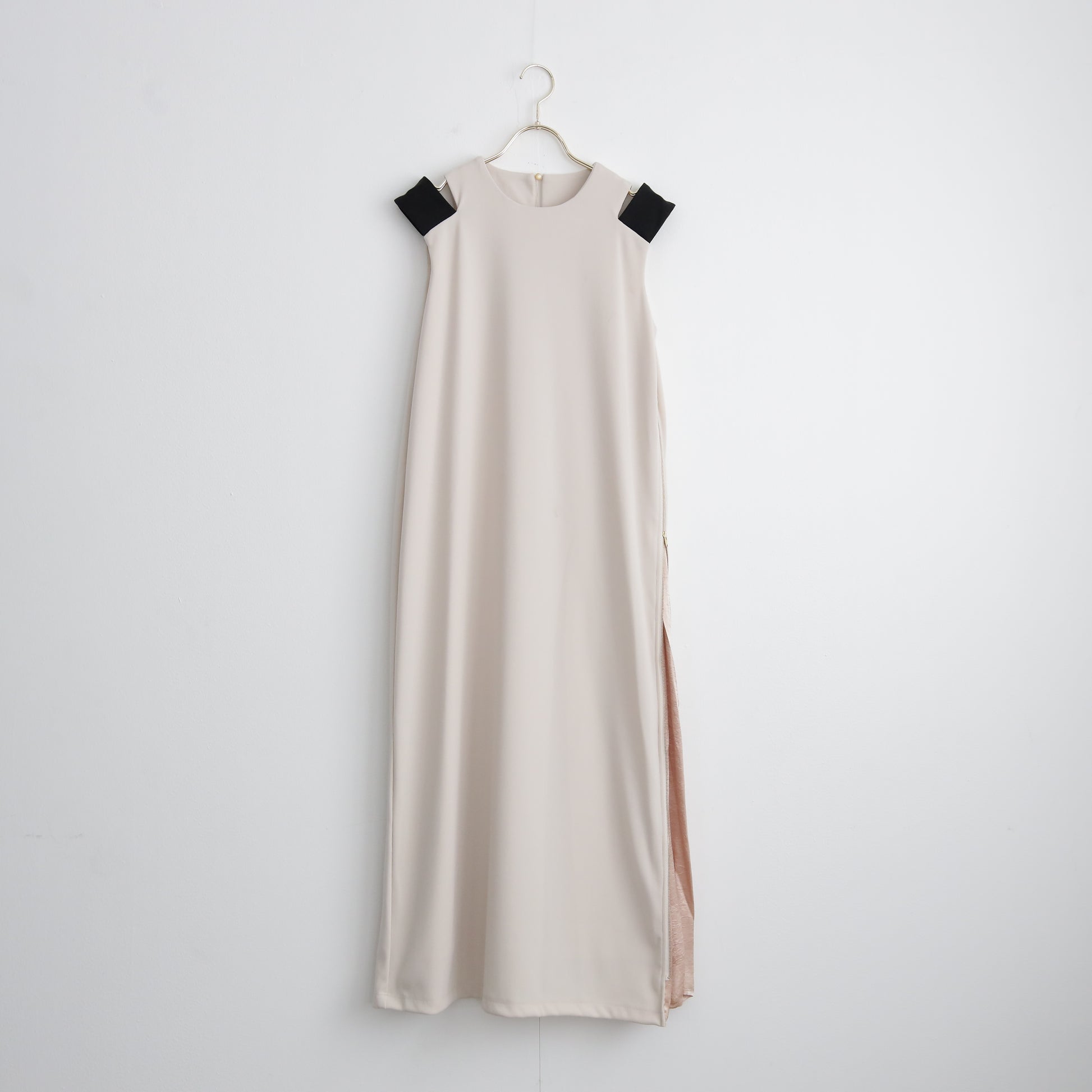 ショルダー部分の配色デザインとスリットで抜け感を演出するワンピース。