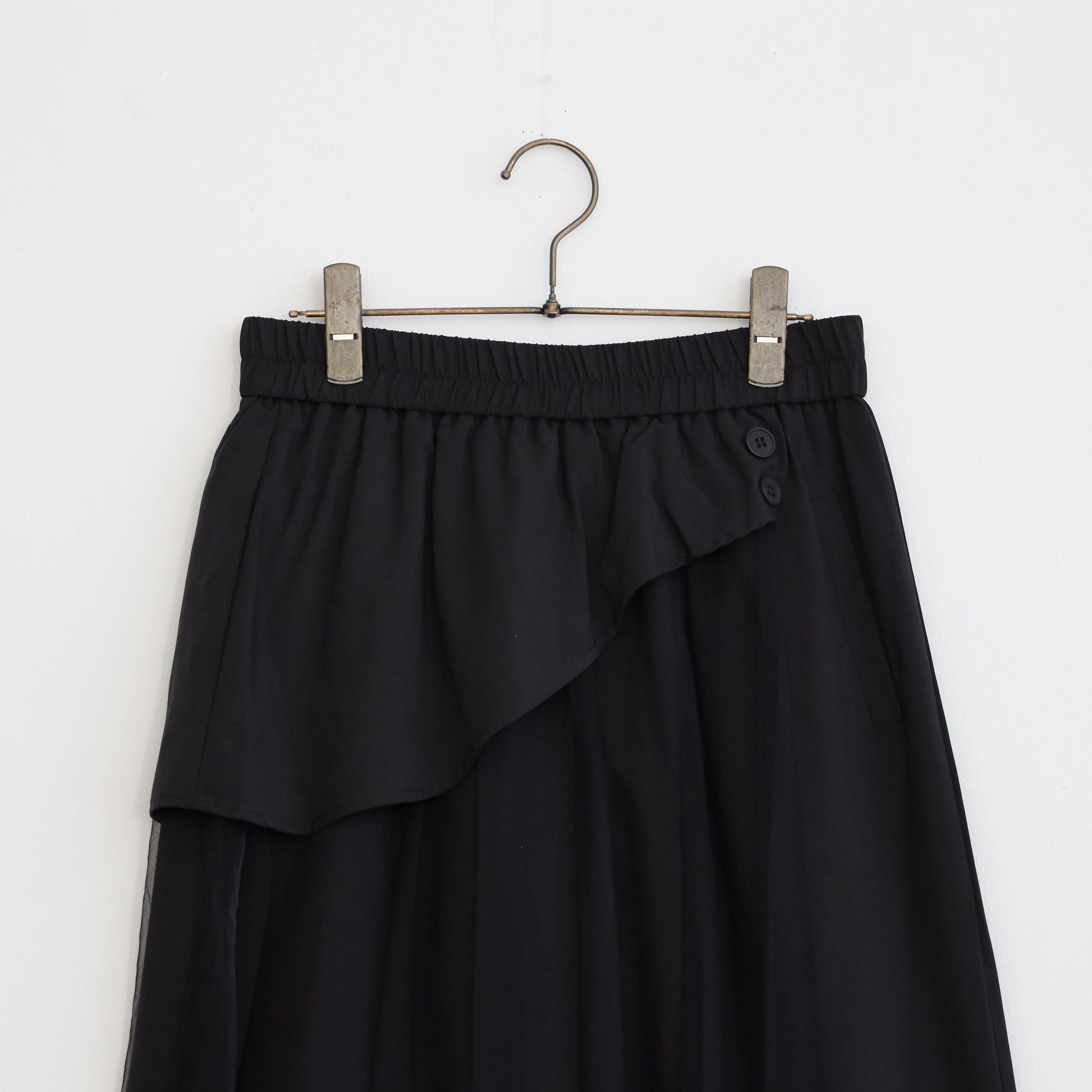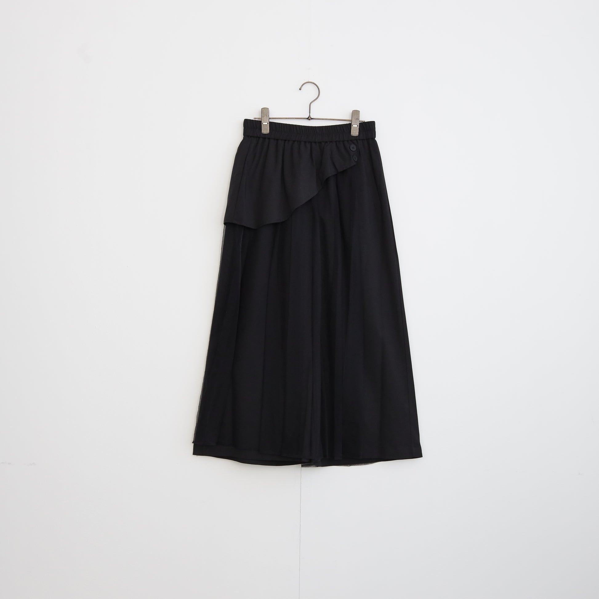 ウエストにチュール巻デザインが施されたパンツ。